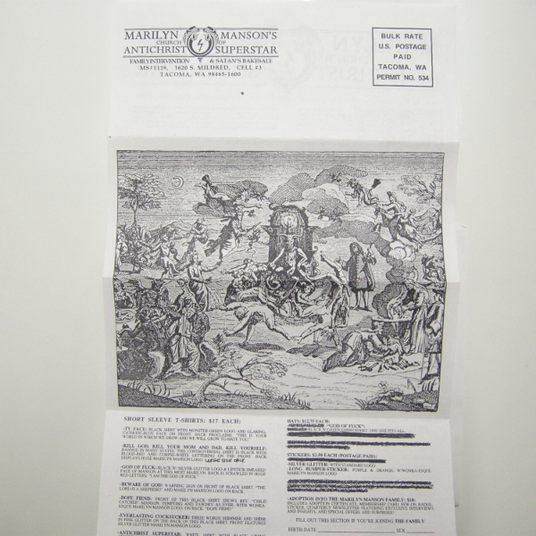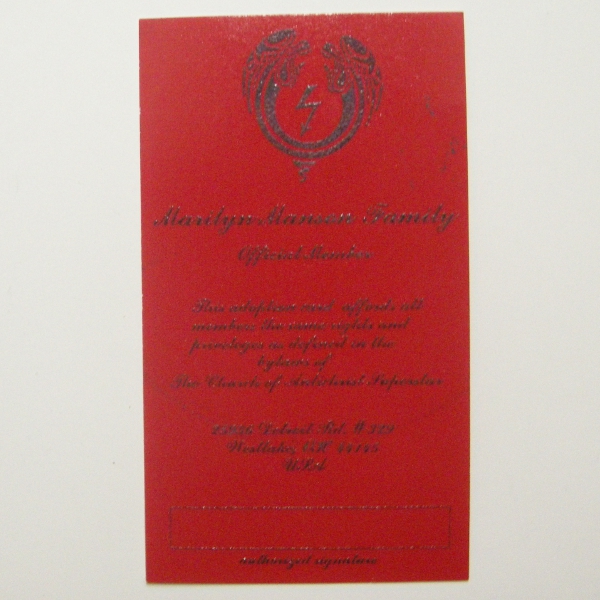 Church Of Antichrist Superstar membership card. Shock symbol patch and sticker, official fanletter #1.