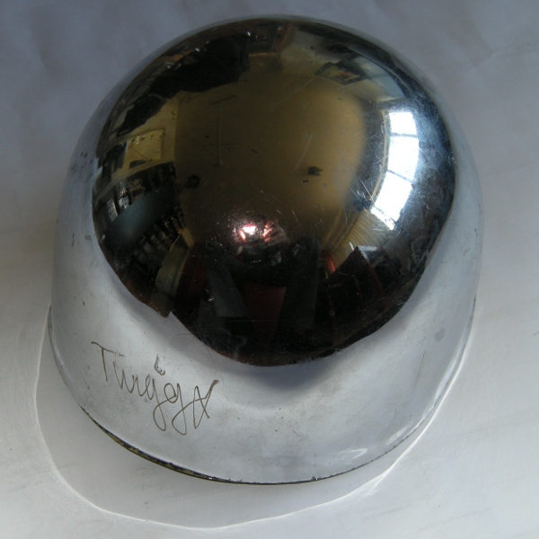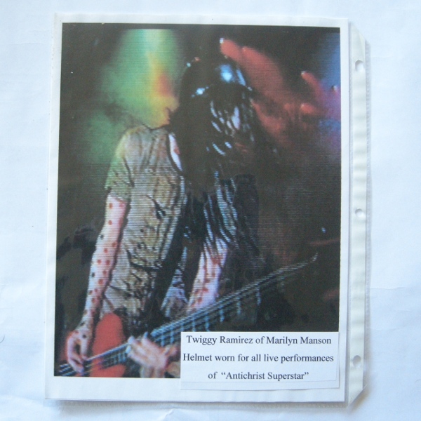 Chrome helmet owned by Twiggy Ramirez. Worn at all live performances of the song Antichrist Superstar. Signed with a silver pen. Including Certificate Of Authenticity signed by Twiggy Ramirez and Greg York.